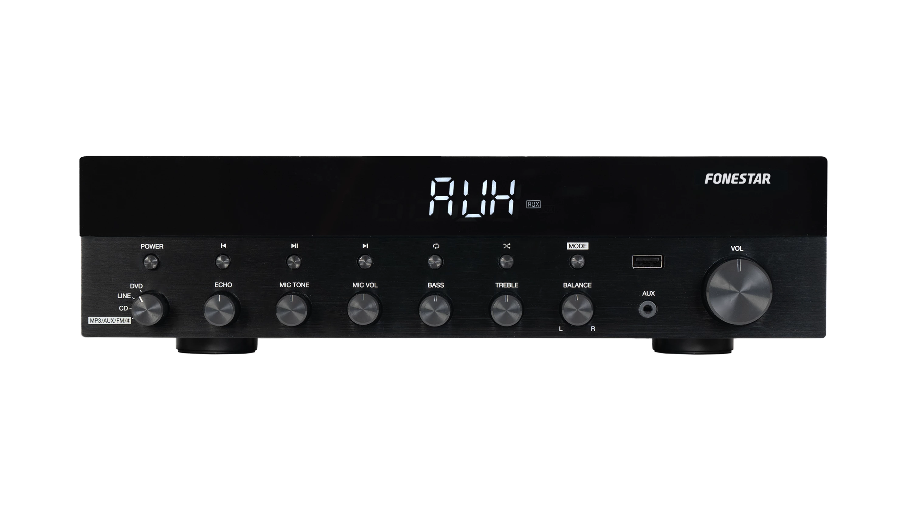 Amplificador estéreo Fonestar AS170Plus de color negro, con el reproductor USB/MP3 para escuchar tu música favorita desde tus dispositivos Bluetooth.