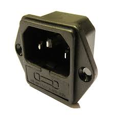 Base chasis C14 macho, 250V/10A, con porta-fusibles