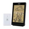 Estacion meteorológica inalámbrica de pequeño tamaño pero con todas las prestaciones, Reloj, Alarmas, Temperatura interior, exterior, Pronostico del tiempo, etc. Es totalmente inalámbrica gracias a que se alimenta con baterías. En pantalla se muestran claramente y de manera simultánea, la hora, la temperatura interior, la temperatura exterior y una animación con el pronóstico del tiempo. Reloj sincronizado por radio DCF muy preciso. Zona horaria ajustable. Incorpora la función de programación de alarma y botón «Snooze» para aplazar la alerta.