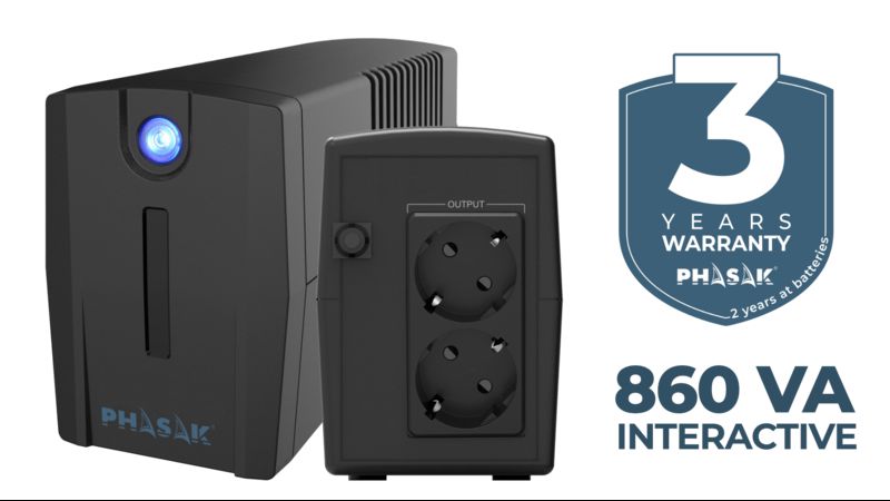 El SAI PHASAK Ottima de 860VA con 2 tomas schucko con respaldo de batería ofrece una solución accesible y eficaz para proteger equipos en pequeños entornos domésticos o de oficina. Incorpora tecnología interactiva, regulación de voltaje (AVR) y dos tomas Schuko para asegurar continuidad ante microcortes, sobretensiones y caídas del suministro. Diseñado para una instalación sencilla (Plug & Play), incluye back-up en caso de corte eléctrico, protección contra sobretensiones, arranque en frío, recarga y reinicio automáticos, así como carga fuera de línea sin generar ruido ni calor.