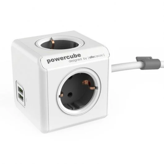 Premio Red Dot Design: adaptador de viaje y regleta de alimentación para complementar las regletas de alimentación Allocacoc, con 4 enchufes y 2 puertos USB