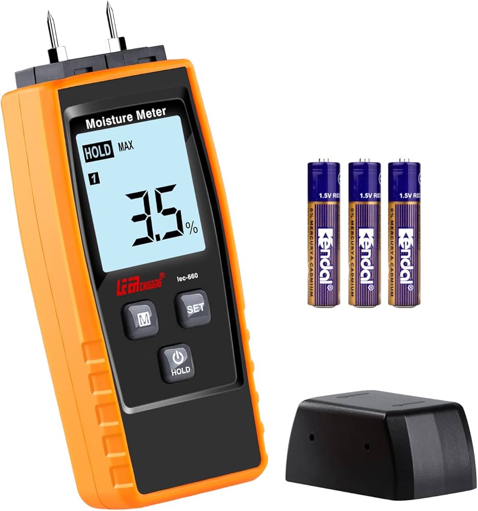 Descubra el medidor de humedad ideal tanto para uso profesional como personal. Con este aparato, podrá medir sin esfuerzo el nivel de humedad en madera, cartón, papel, yeso, hormigón y mucho más. La pantalla LCD ofrece una lectura clara, respaldada por una función de retención de datos. Con un rango de medición del 5% al 90% y una gran precisión, este instrumento es perfecto para realizar mediciones precisas. El aparato se alimenta con una pila de 9 V incluida y resulta cómodo por sus dimensiones compactas y su peso ligero.